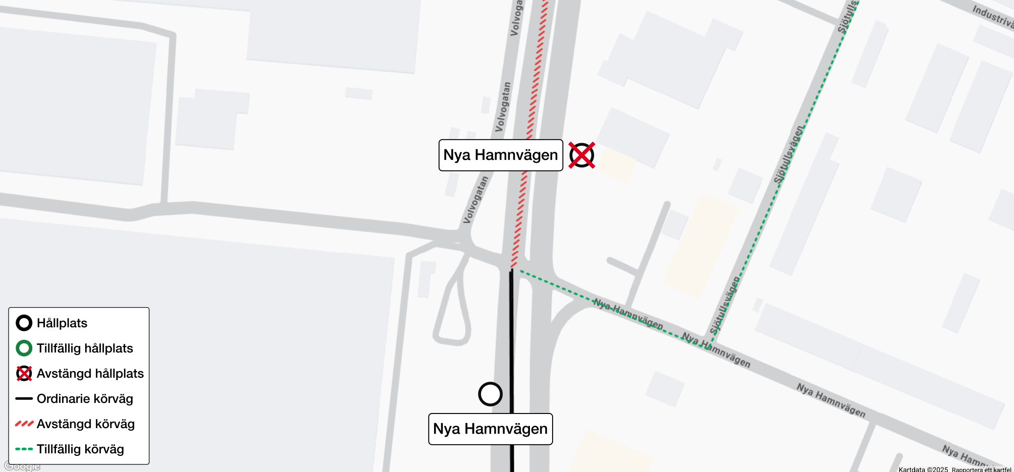 Hållplats Forntidsgatan på linje 1 är avstängd 2025-11-03 kl 13:01 till 2026-01-01 kl 3:59 på grund av vägarbete. Resenärer hänvisas till hållplatserna Bjurhovdamotet och Kungshögsgatan.